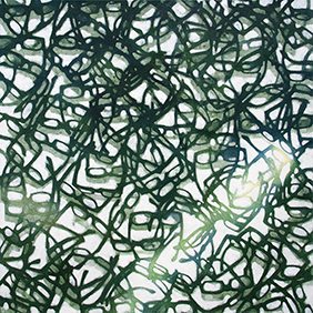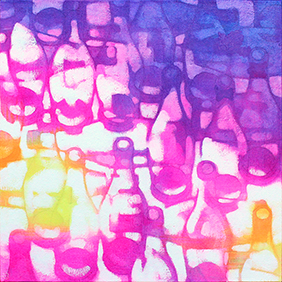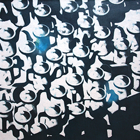現代空間にマッチする絵画として注目を集める中西作品は、具象を反復構成することで抽象性を得た